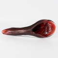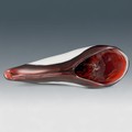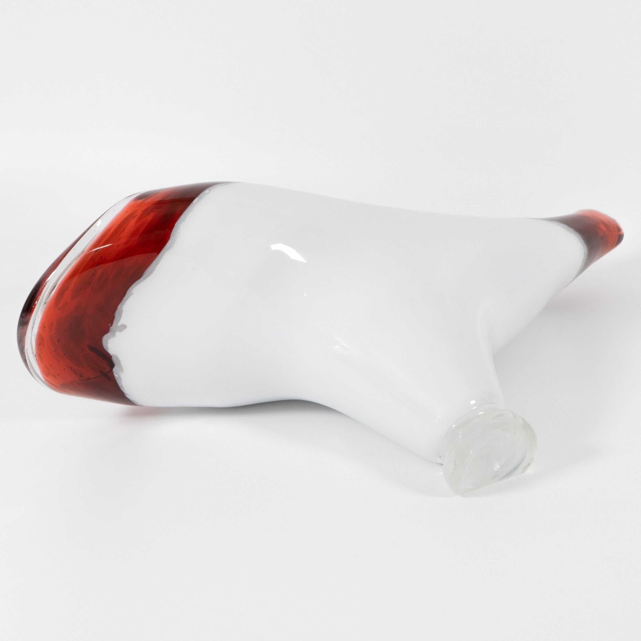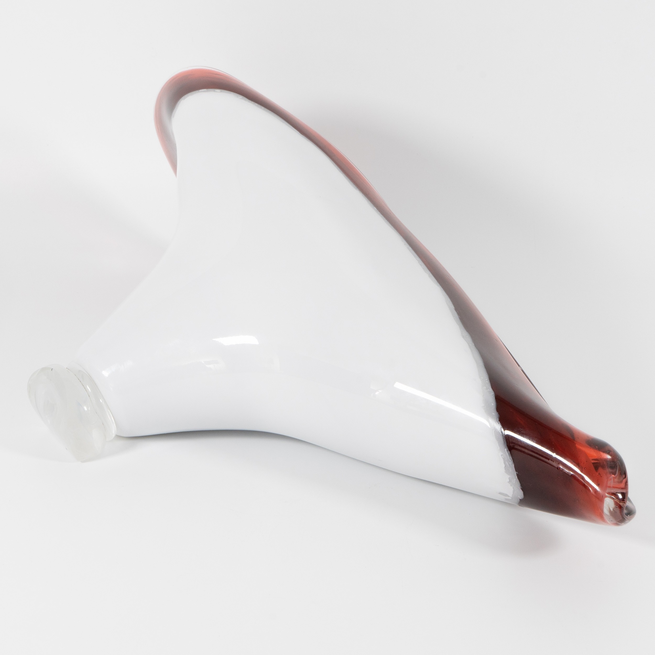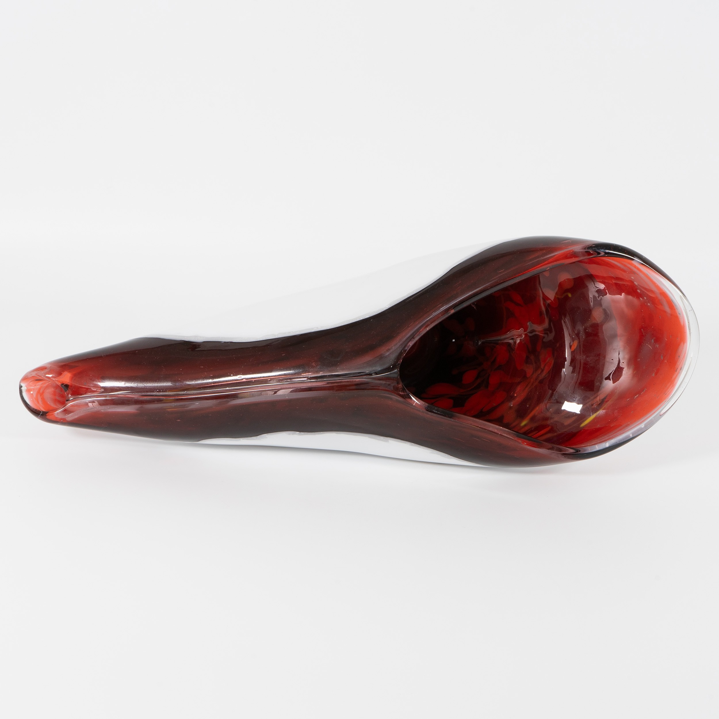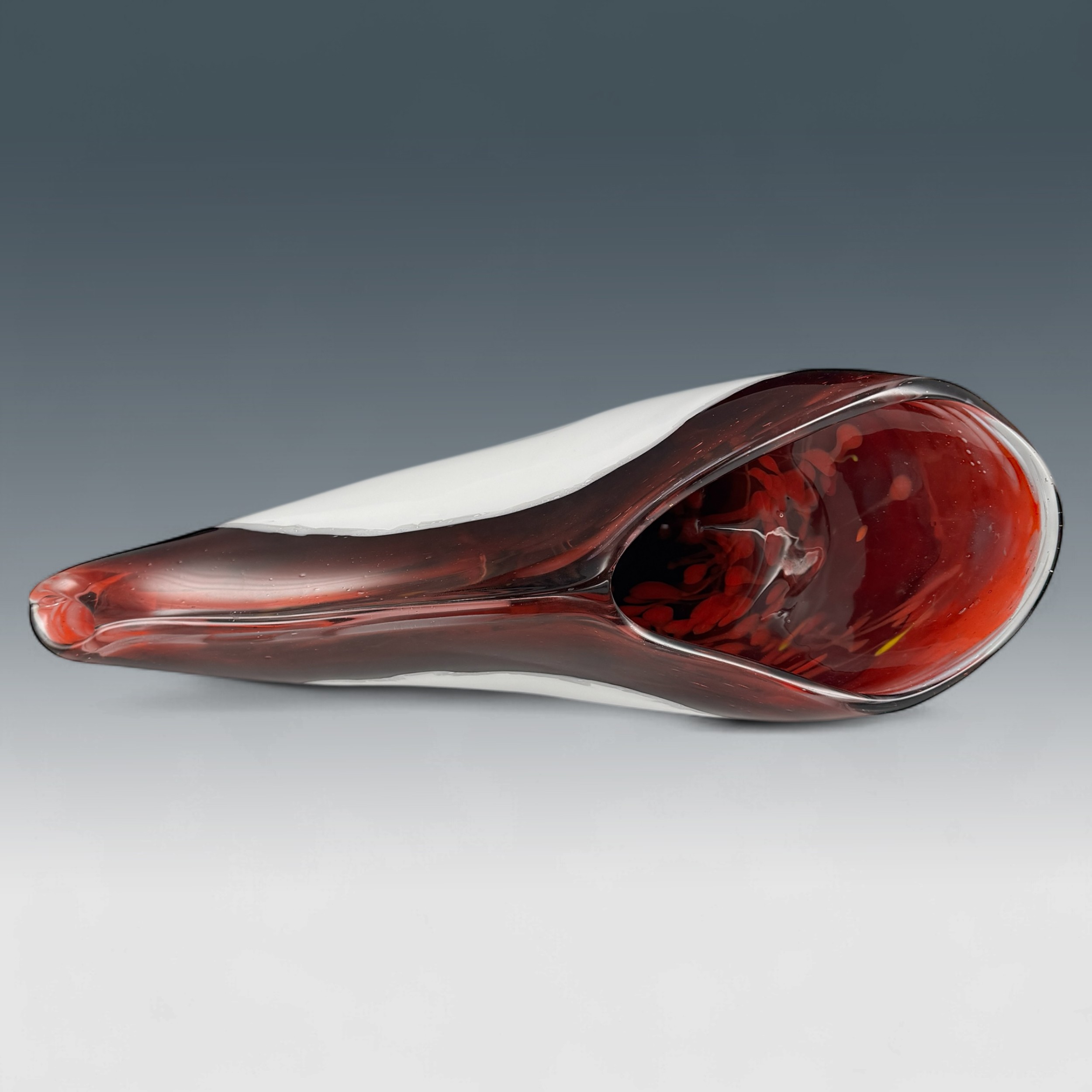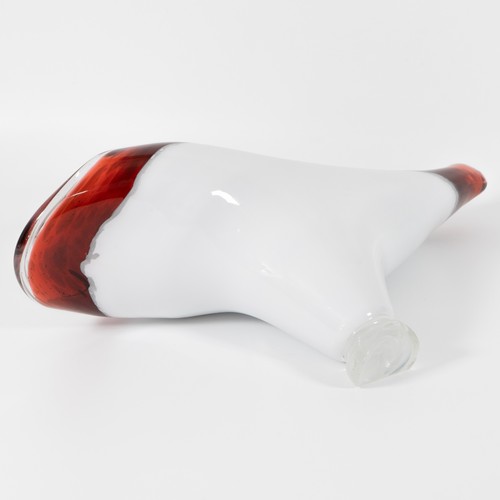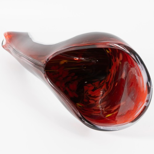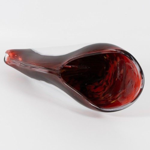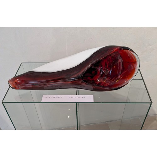 Karel Wünsch (Czech, 1932-2020), 'Musle Velka' (Big Mussel), a freeform hotworked cased art glass sculpture, the colourless body with cranberry overlay with yellow and other coloured mottled chips melted in, partially cased in an outer opaque white layer, with cut and polished moil, and three ground areas on the base to stand, unsigned, approx. 54cm wide, 17cm high, 26cm deep.