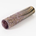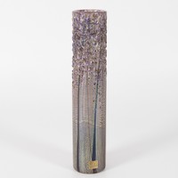 FOOTNOTE: Along with the other three designs from the 'Seasons' range, 'Summer' was only available for purchase by members of the Isle of Wight Studio Glass Collectors Club, making them considerably harder to find than 'production' designs. Summer was only initially produced from late 2007 until June 2008. It was initially produced in three sizes of cylinder vases, of which this is the middle size. Only 34 examples of this size were ever made. The design was based on Michael Harris' (Timothy Harris' father) legendary 'Undercliff' range of 1987, but is distinguished from it by the colours and the addition of textured coloured chips partially melted into the body on the top half of the body.