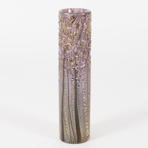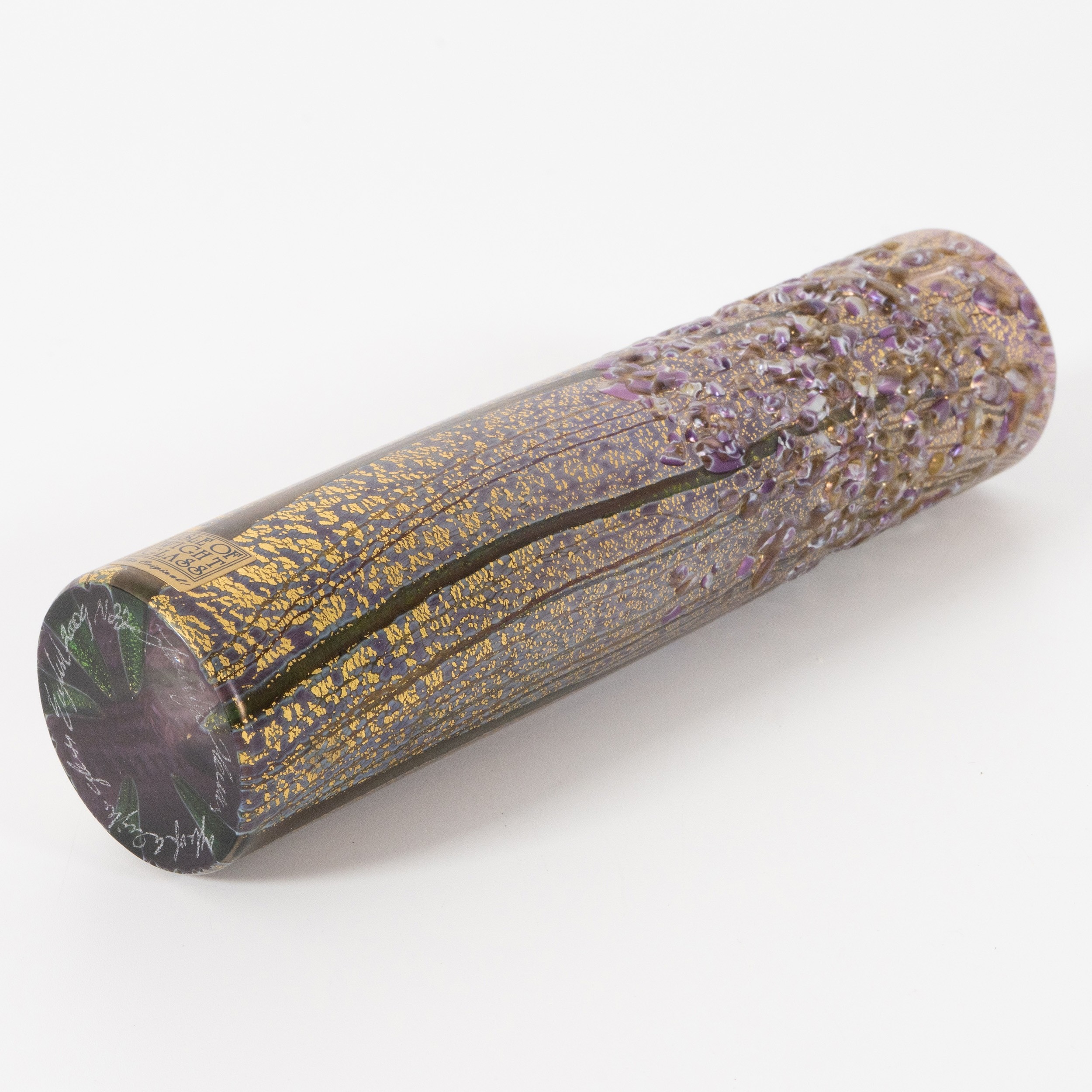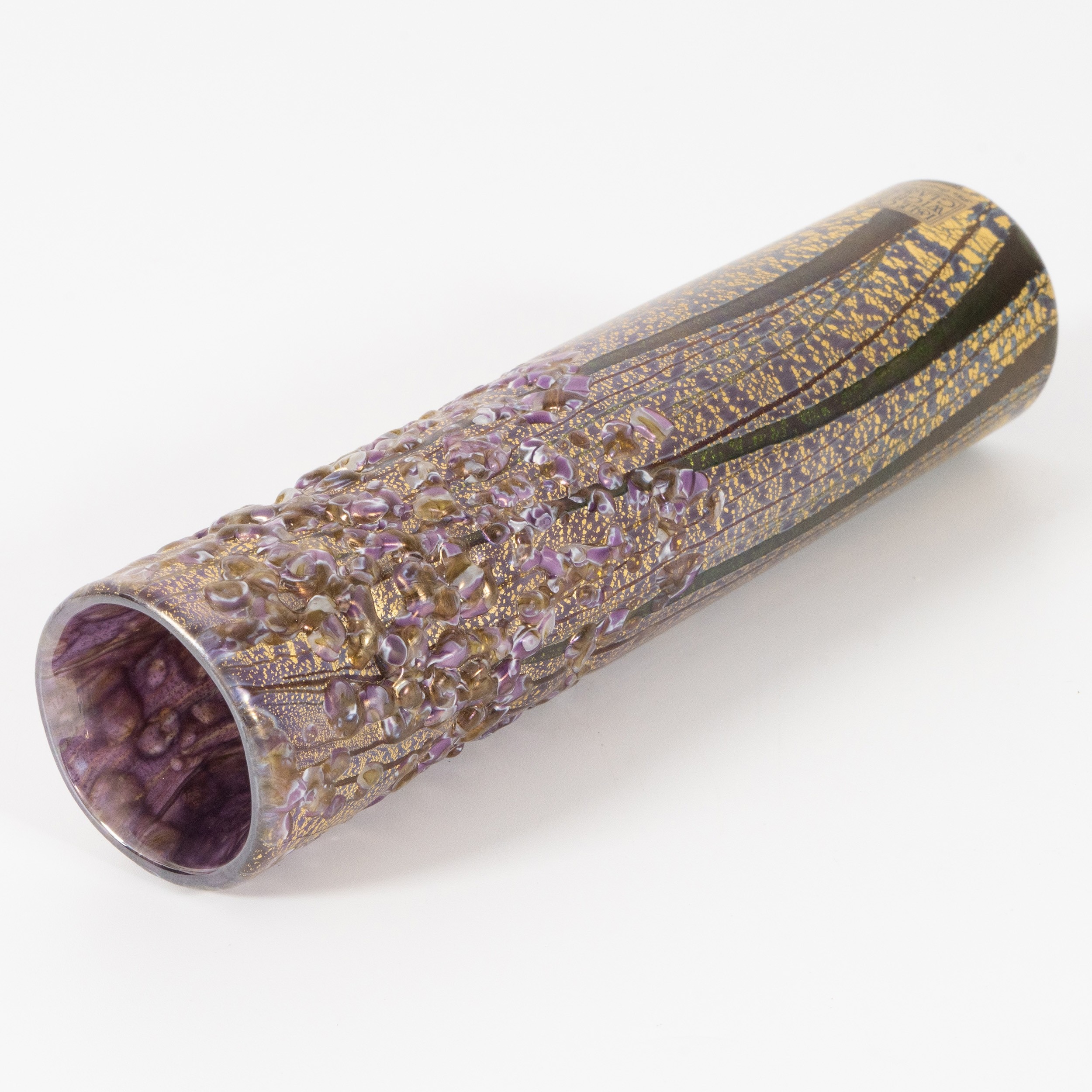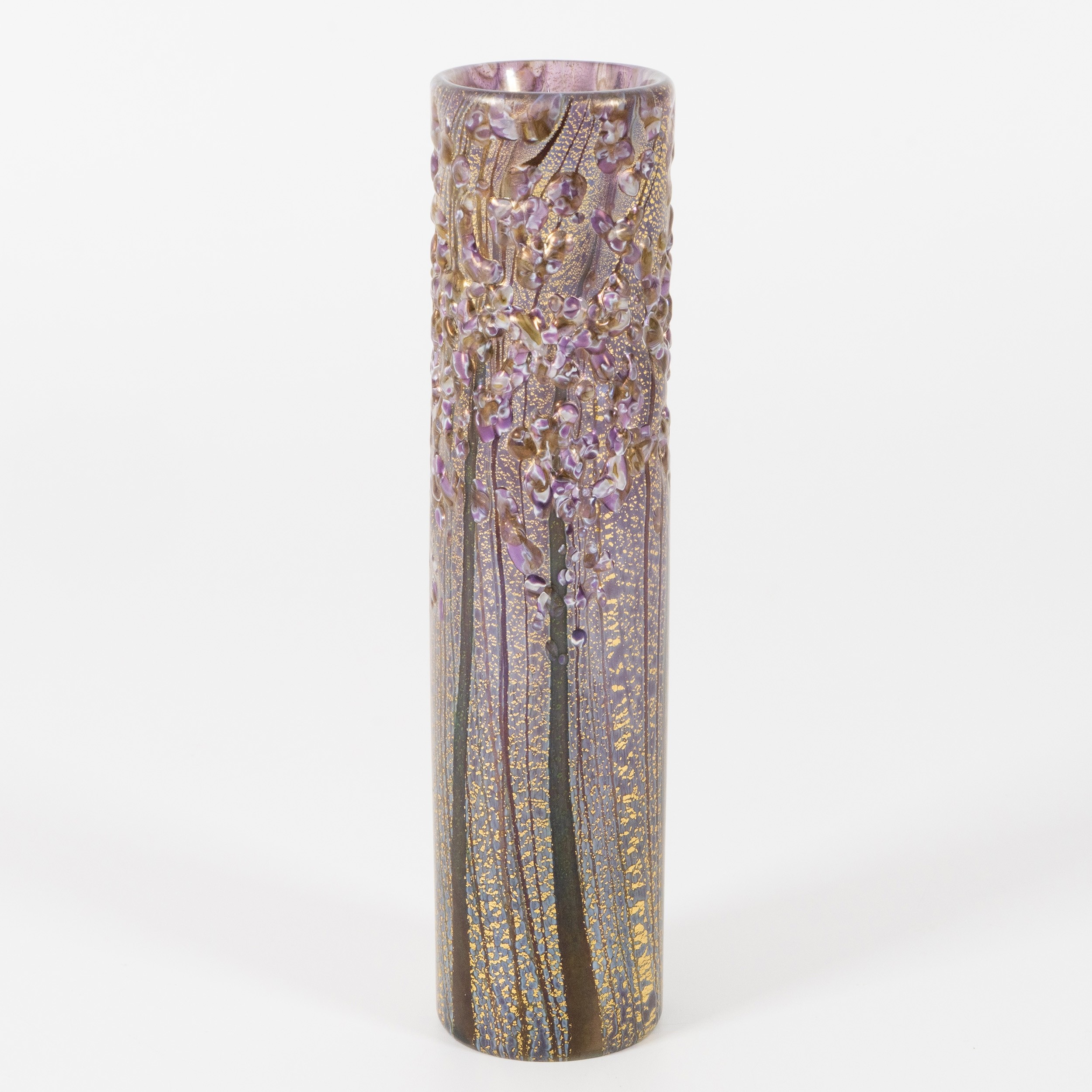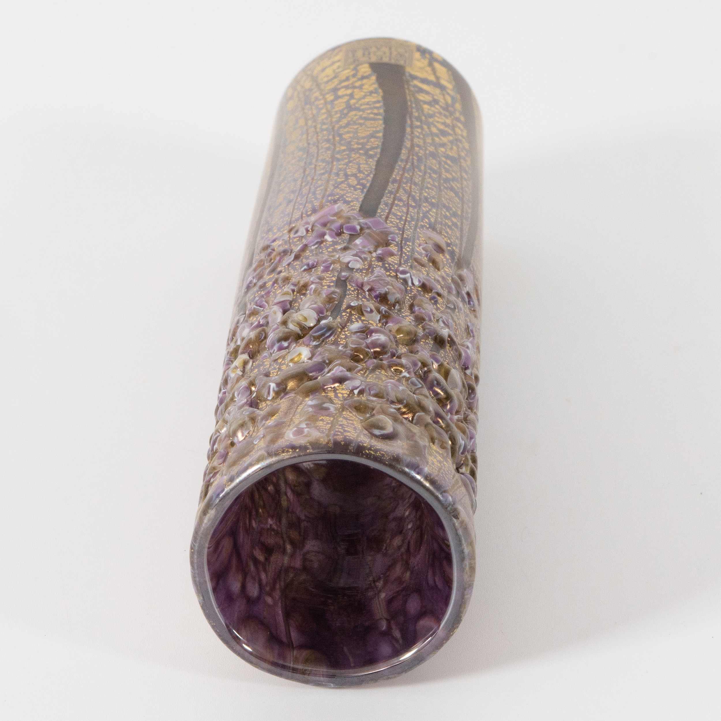 An Isle of Wight Studio Glass medium-sized 'Seasons - Summer' cylinder vase, designed and made by Timothy Harris, the base inscribed 'Isle of Wight Glass England 2009 No.32 Timothy Harris', together with a certificate of authenticity signed and numbered by Timothy Harris, an Isle of Wight Glass information tag, a company cylindrical box and packing, vase 16.4cm high, box 20.5cm high.
